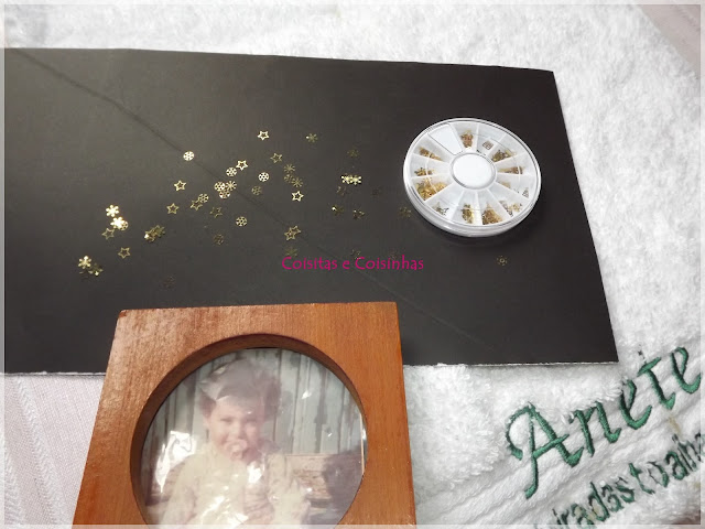 Trouxe mais uma customização de porta retratos (já mostrei outras aqui e aqui) e dessa vez usei apenas base de unhas (vencida, eu compro aqueles vidros gigantes) e apliques de unhas dourados recebidos da Born Pretty Store.