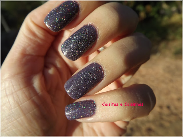 Na sombra ele parece um glitter normal, prateado.