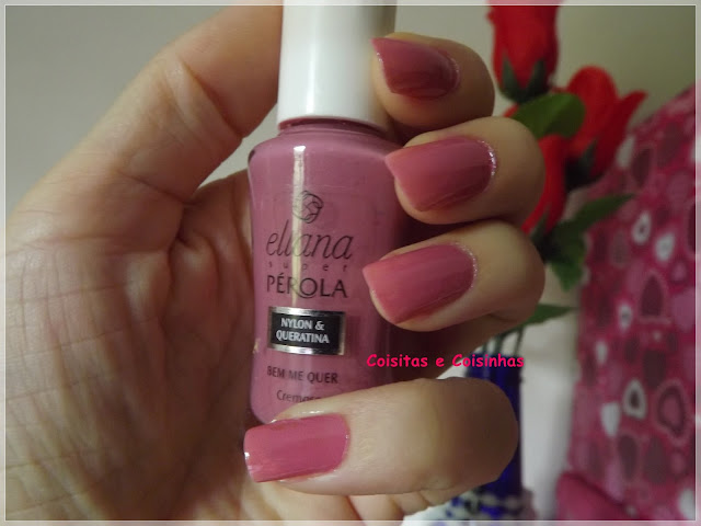 E para finalizar o Outubro Rosa, trago uma combinação de esmaltes. Primeiramente apliquei o Eliana Super Pérola Bem Me Quer, um esmalte mega antigo no meu gaveteiro. Se não me falha a memória, foi uma camada e ele ficou assim: