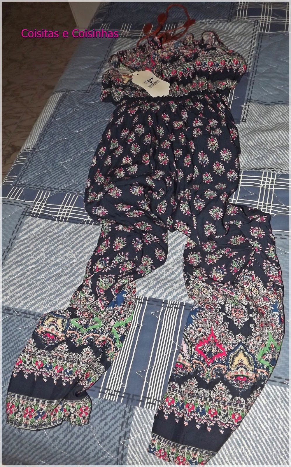 Macacão estampado. Na mesma loja também. E já virou calça, gente, kkkkkk.