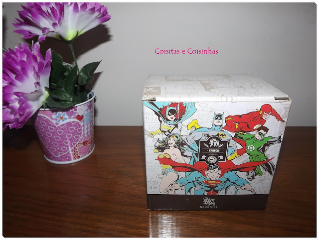 A caneca veio nessa caixinha bem bonita, que certamente será usada como porta trecos: