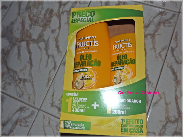 Shampoo e Condicionador Garnier Fructis. Espero que cumpra com a promessa de efeito cauterização. Se alguém já usou, diz aí o que achou dele.