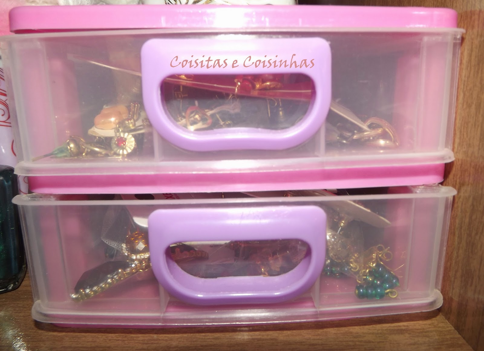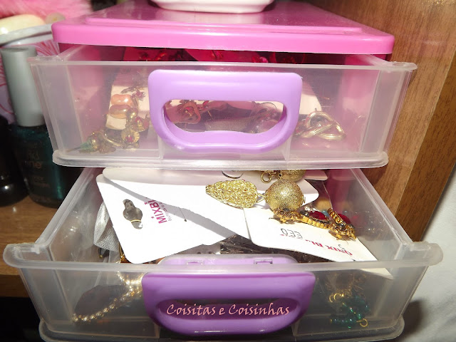Tenho ainda um mini gaveteiro e ele fica no guarda roupa, com os brincos durados.
