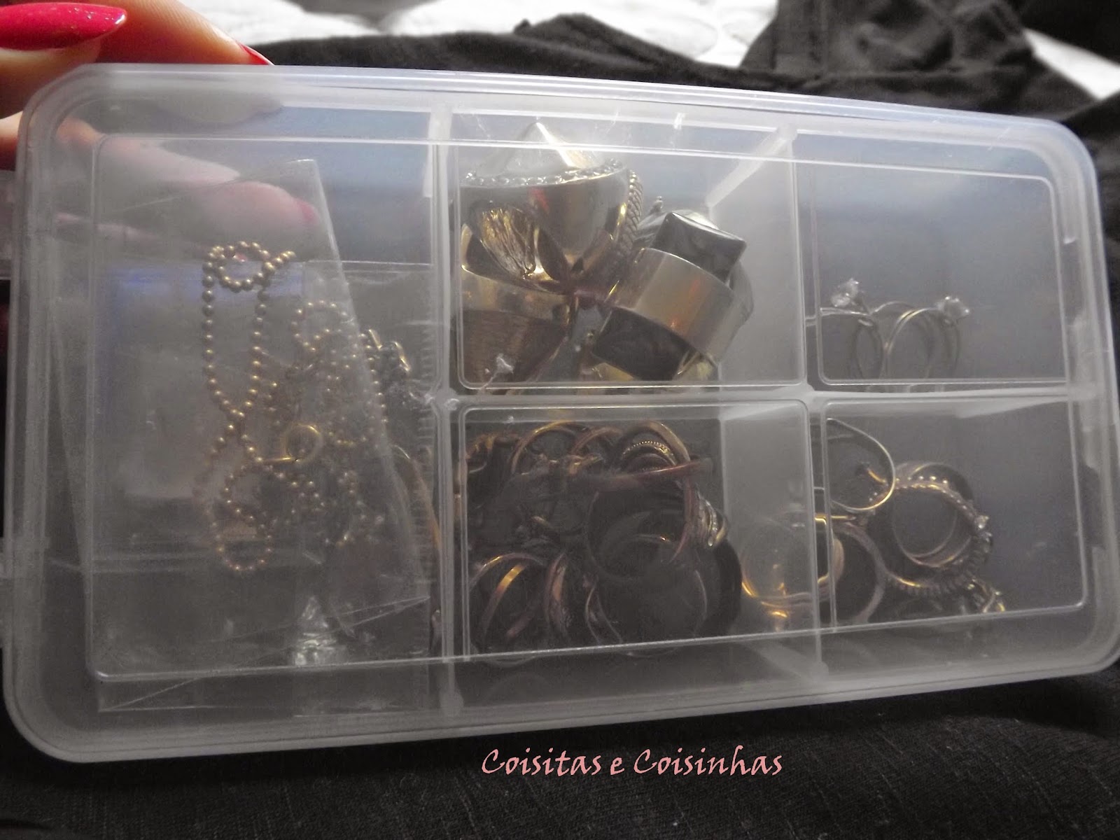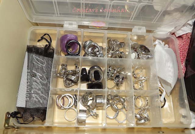 Essa é a caixinha dos anéis prateados e é maior que a dos dourados, pois uso mais prata.