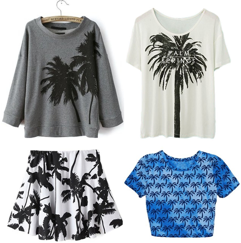 Temos como tendência para o verão a estampa de coqueiros. Além de ser a cara da estação, traz alegria ao look e pode ser usada tanto no lazer quanto no trabalho.