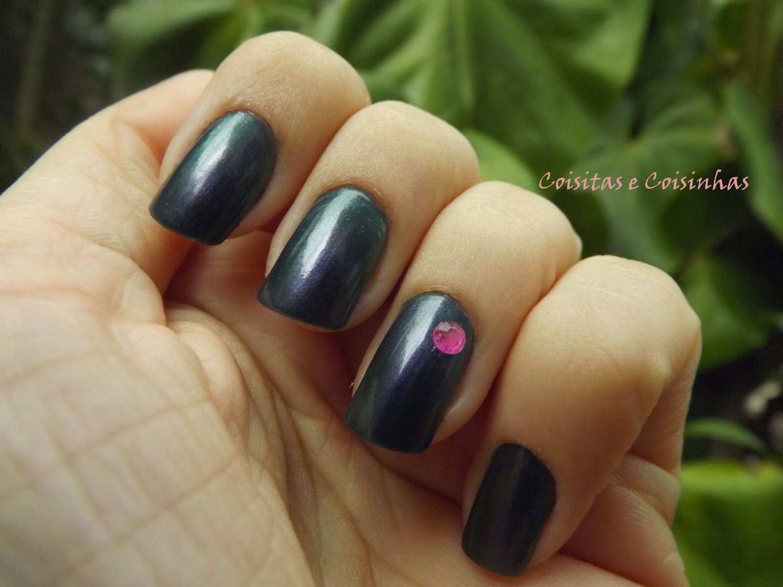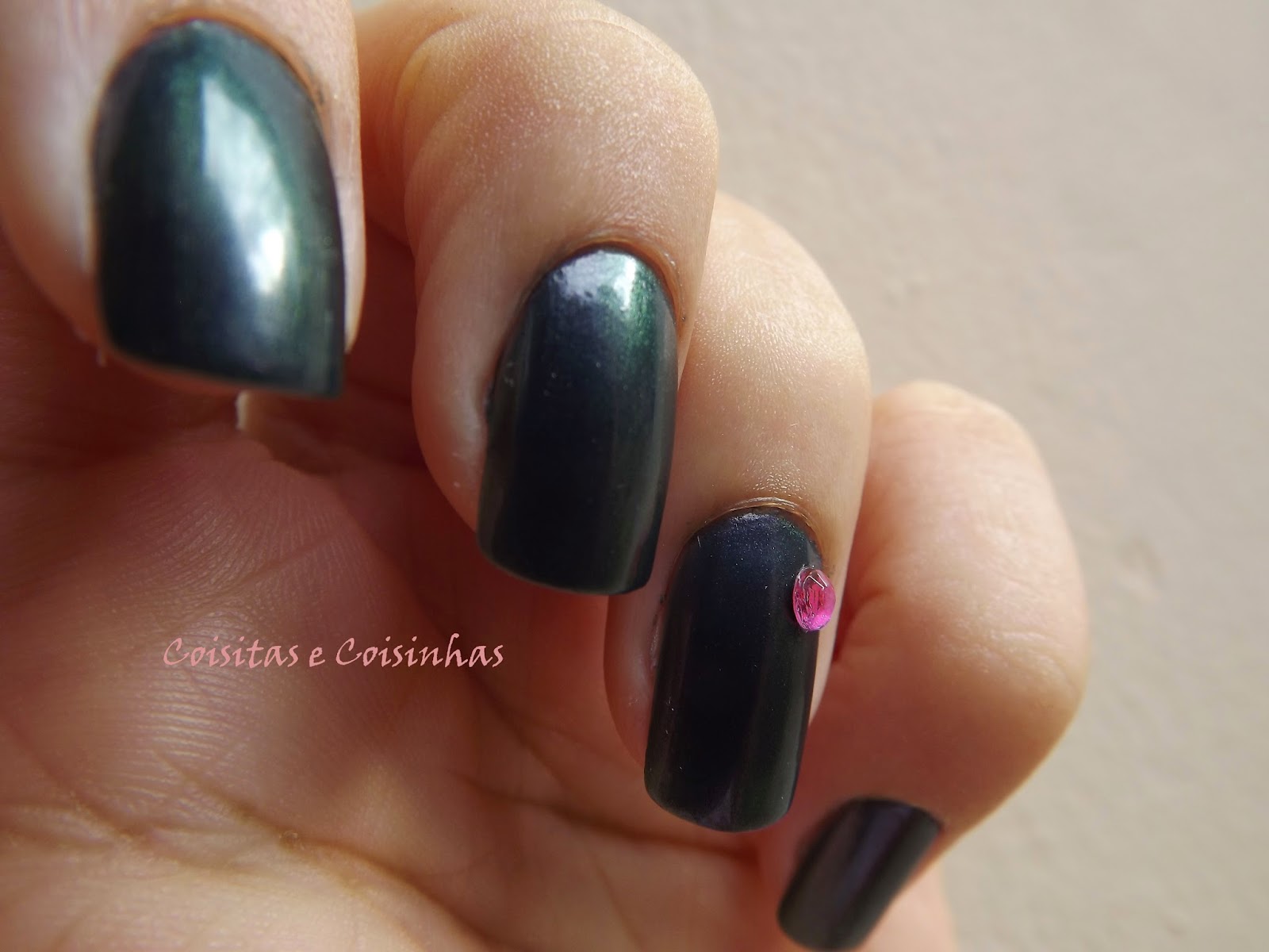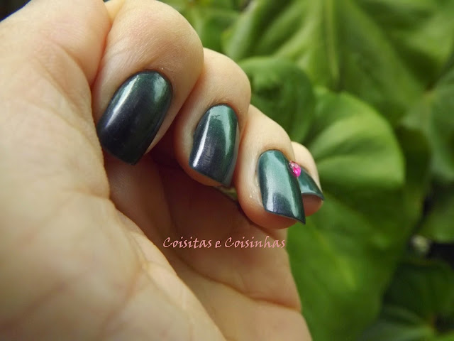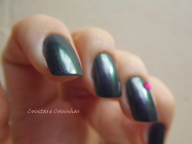 Pra fazer um charminho, apliquei um cristal pink da Impala em cada anelar. O da mão esquerda caiu ontem :(