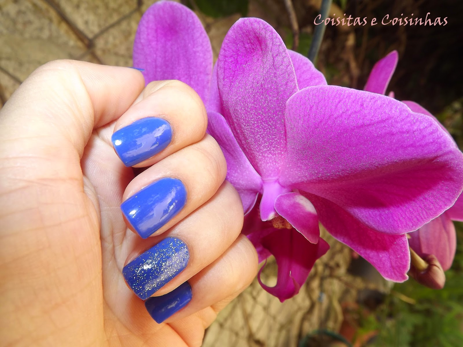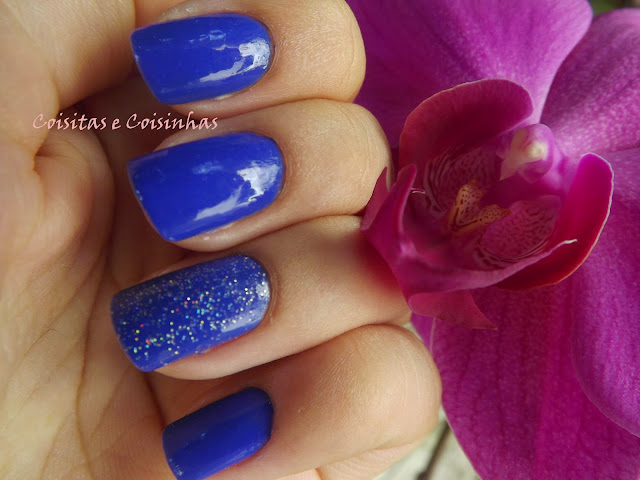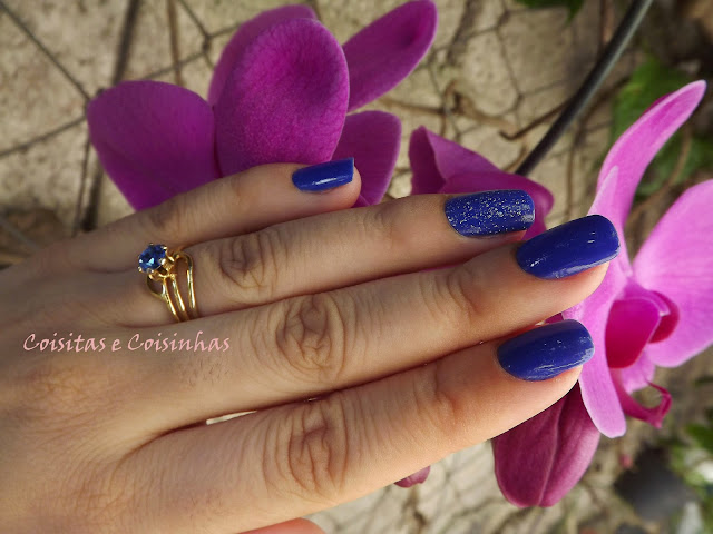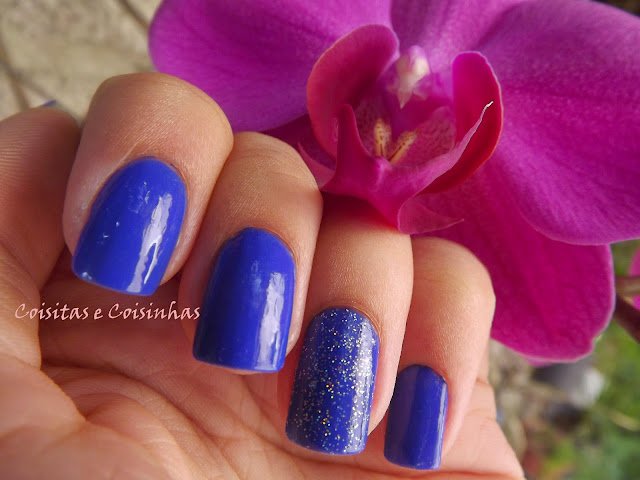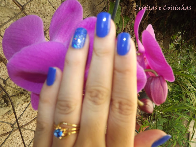 O esmalte escolhido para essa ocasião foi o lindo Royal Blue da Top Beauty. Foram duas camadas e o brilho é todo dele!