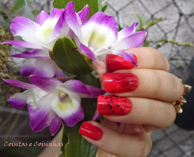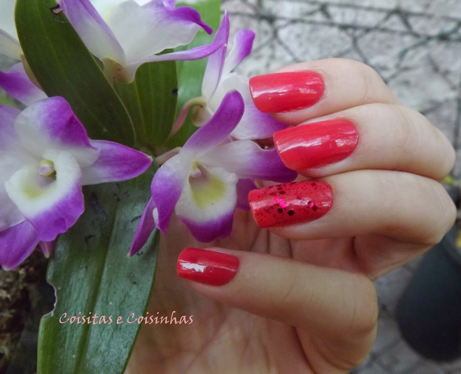 Vamos conferir as unhas da semana? Dessa vez usei duas camadas do Impala Vermelho Coral e uma camada do Orly Rockets Red Glare para fazer a filha única.