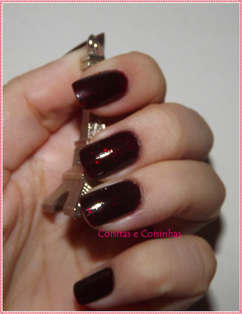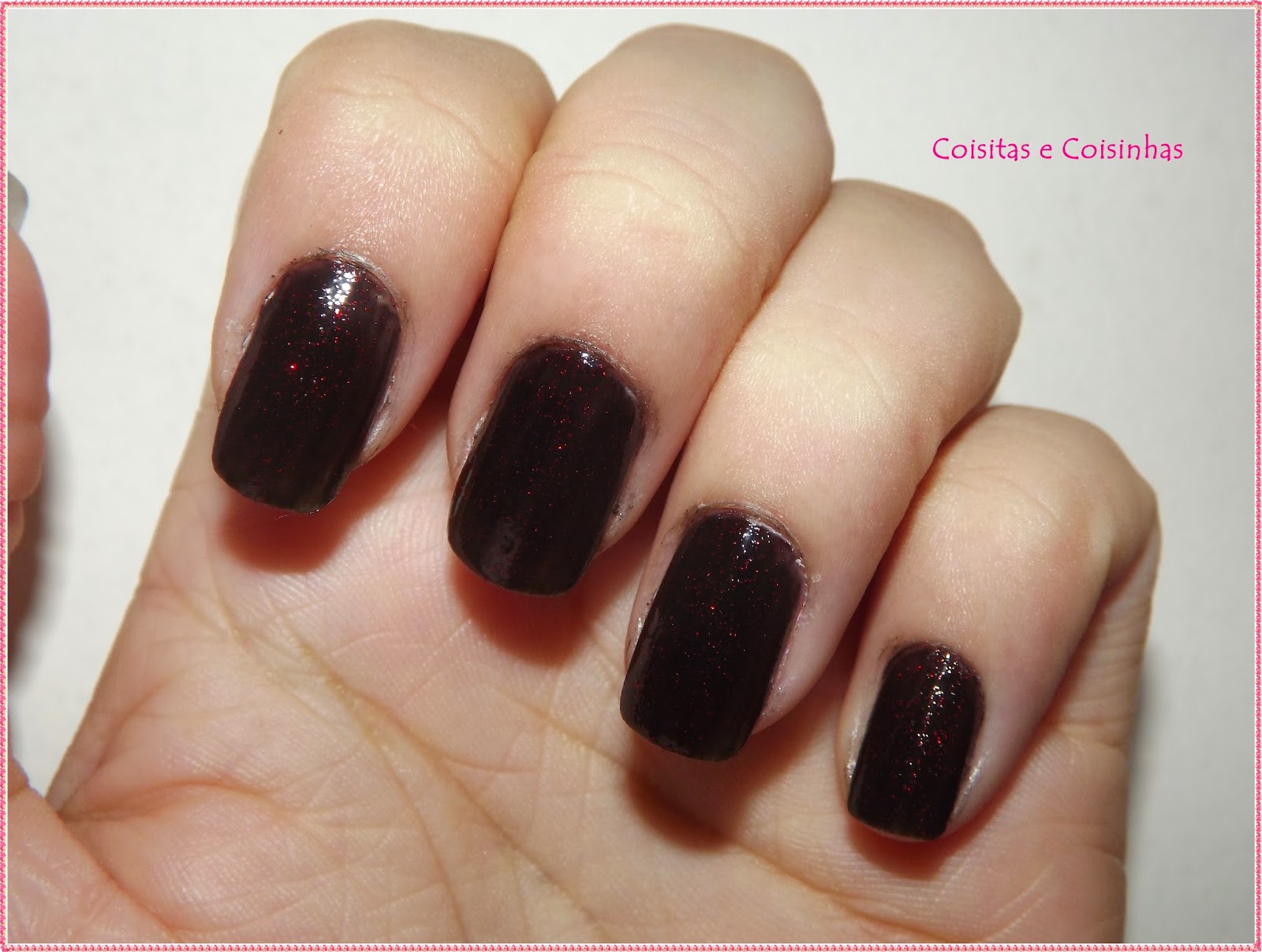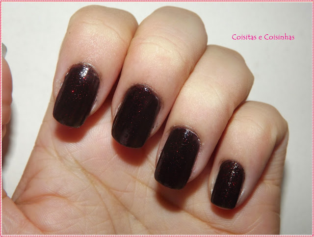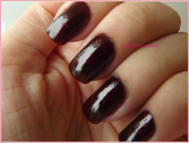 O esmalte usado foi o Zumba, um glitter da Top Beauty. Nem me lembro se eu já tinha ou se comprei pro desafio... Acho que já tinha, rs. Era a única opção e estava em dúvida sobre qual usá-lo, então me lembrei do Viúva Negra da Risqué (de novo ele, fazer o que se amo?) e achei válido combiná-los. Deixou o Viúva Negra ainda mais bonito, não?